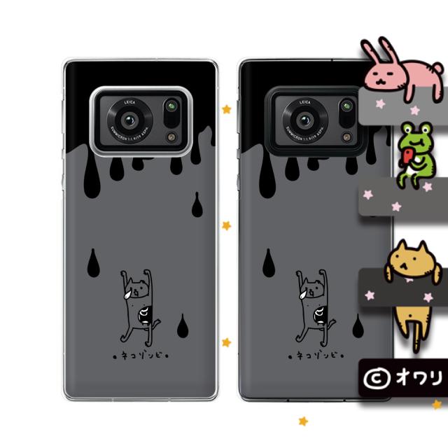 AQUOS R6 (docomo SH-51B / SoftBank) スマホ ケース ハード カバー オワリ 「ネコゾンビ・ダーク」 ブラック