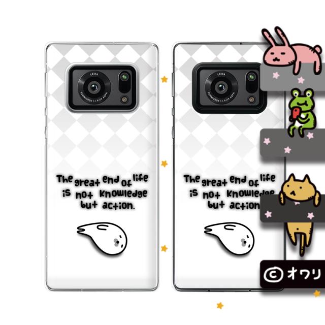 AQUOS R6 (docomo SH-51B / SoftBank) スマホ ケース ハード カバー オワリ 「転がるアザラシ」 ホワイト
