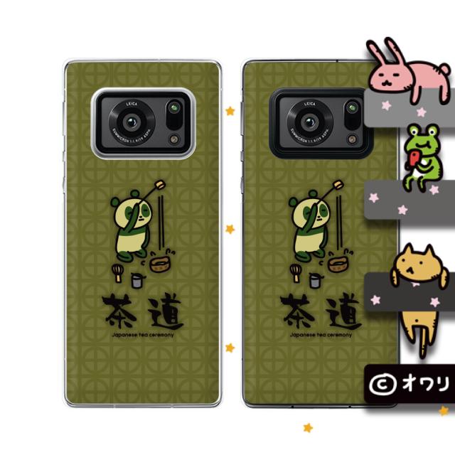 AQUOS R6 (docomo SH-51B / SoftBank) スマホ ケース ハード カバー オワリ 「茶道を行くパンダ」 グリーン