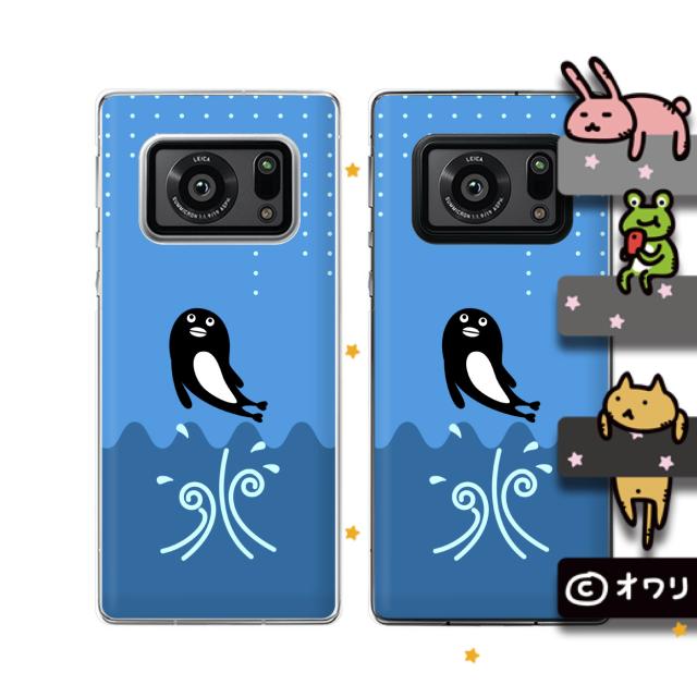 AQUOS R6 (docomo SH-51B / SoftBank) スマホ ケース ハード カバー オワリ 「ペンギンジャンプ」 ブルー