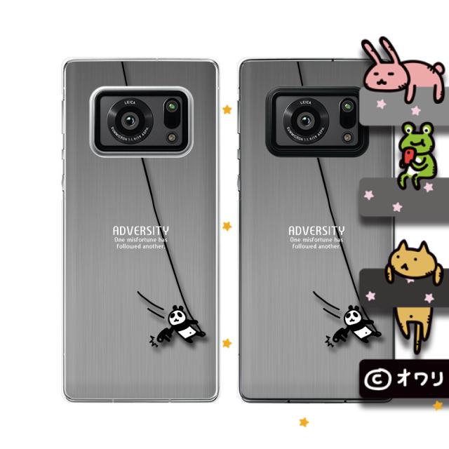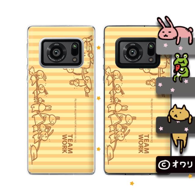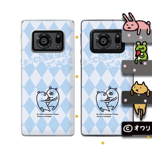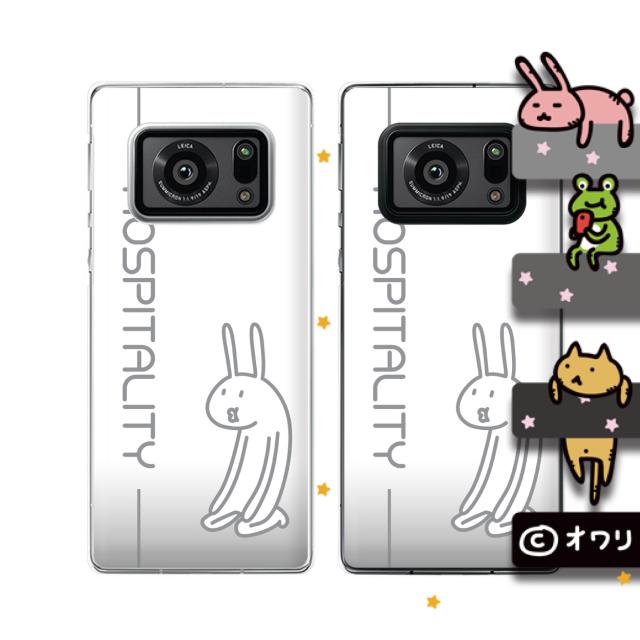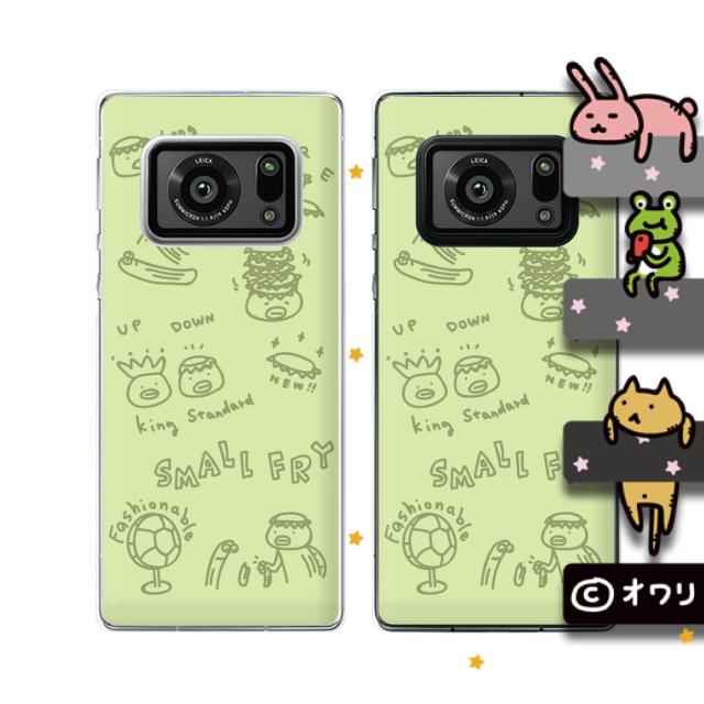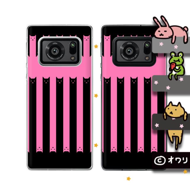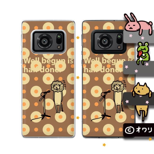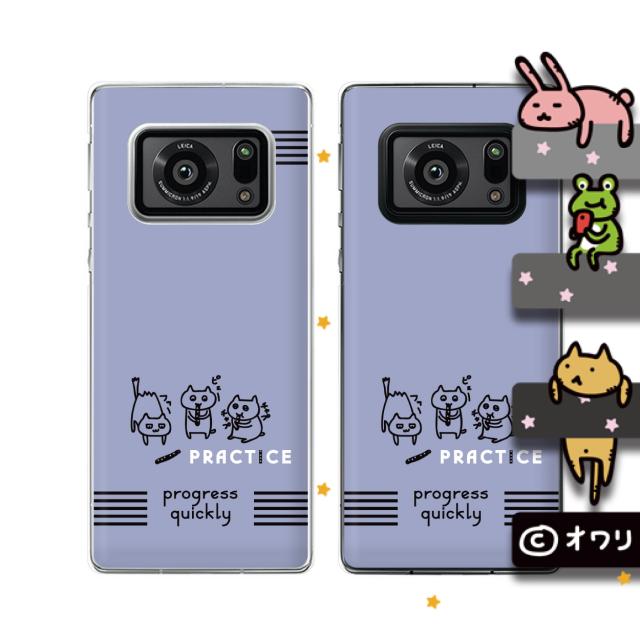 AQUOS R6 (docomo SH-51B / SoftBank) スマホ ケース ハード カバー オワリ 「ネコのリコーダー練習」 グレー