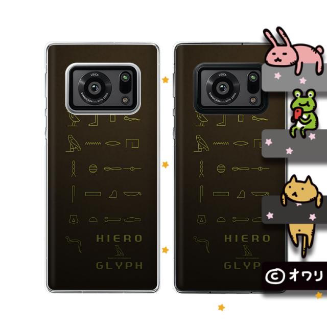 AQUOS R6 (docomo SH-51B / SoftBank) スマホ ケース ハード カバー オワリ 「ヒエログリフ」 ブラウン