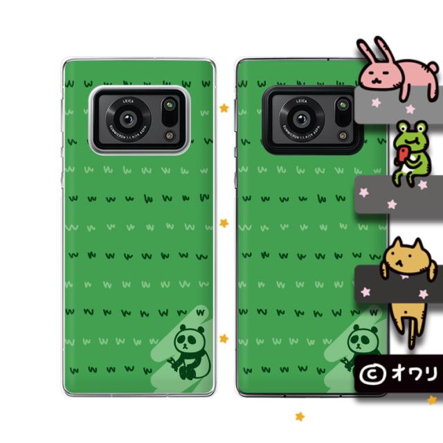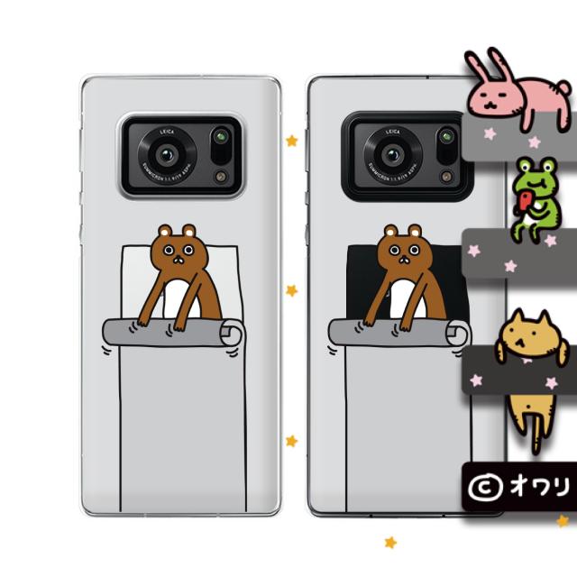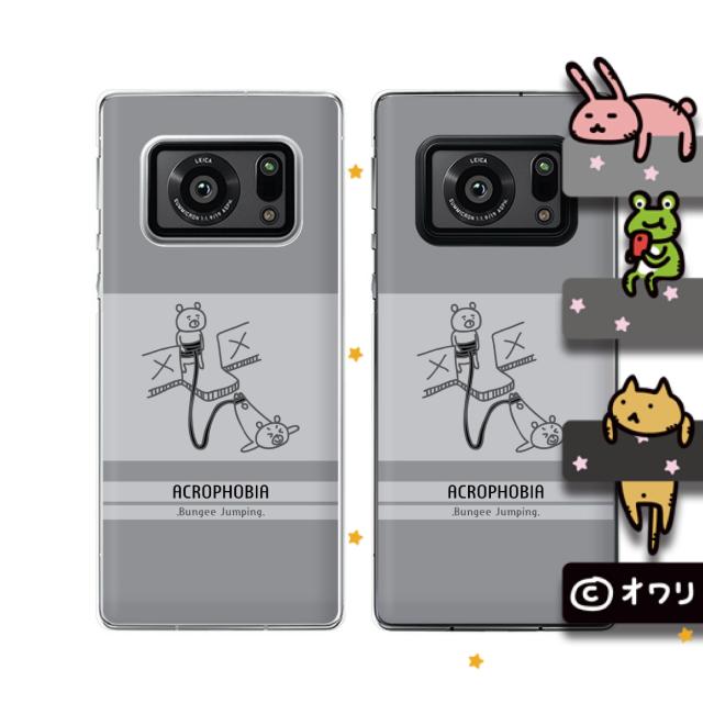 AQUOS R6 (docomo SH-51B / SoftBank) スマホ ケース ハード カバー オワリ 「クマのバンジージャンプ」 グレー