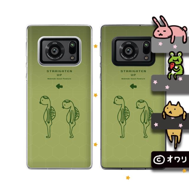 AQUOS R6 (docomo SH-51B / SoftBank) スマホ ケース ハード カバー オワリ 「姿勢の良いカッパ」 グリーン