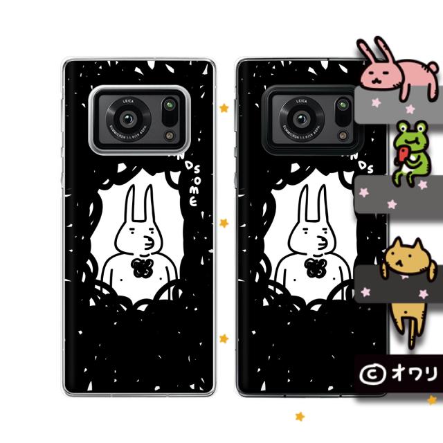 AQUOS R6 (docomo SH-51B / SoftBank) スマホ ケース ハード カバー オワリ 「ハンサムなウサギ」 ブラック