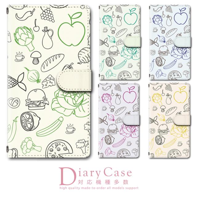 スマホケース 手帳型 多機種対応 カメラホール搭載 ストラップホール付き カード収納 ベルト付き 食べ物柄 野菜 フルーツ ベジタブル チーズ やさい トマト りんご お洒落 オシャレ カフェ 手帳型スマホケース 手帳型ケース 手帖型 てちょう 全機種対応