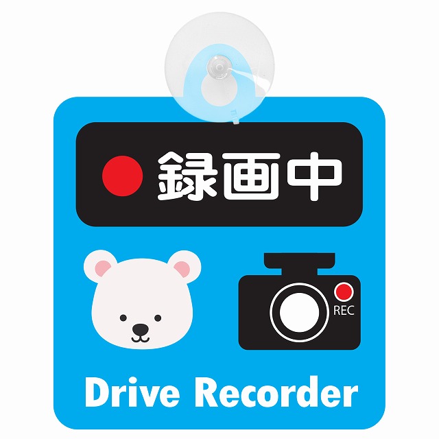 送料無料!セーフティサイン◆カーサイン◆動物アニマル◆シロクマ 白くま◆漢字 録画中 ドライブレコーダー◆ブルー◆後方 吸盤タイプ◆ハンドメイド◆