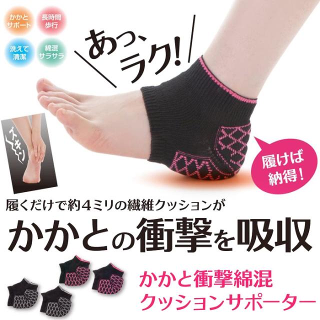 日本製 踵 かかと サポーター 衝撃 吸収 痛くない カカト クッション ソックス かかとすっぽり ウォーキング (af-7704)【メール便送料無料】 ラクラク 靴擦れ改善 蒸れない 洗える ベージュ ブラック 綿混 フットケア 靴のサイズ調整にも使える agesugi_snk