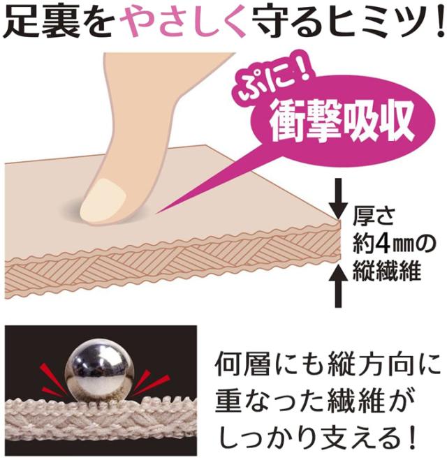 履くだけで約4ミリの繊維クッションがかかとの衝撃を吸収!