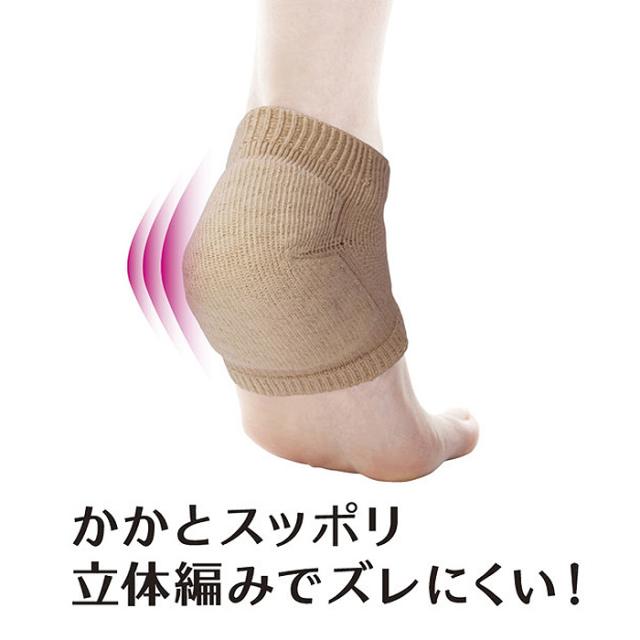 かかとをスッポリ包み込む立体編みでズレにくい。