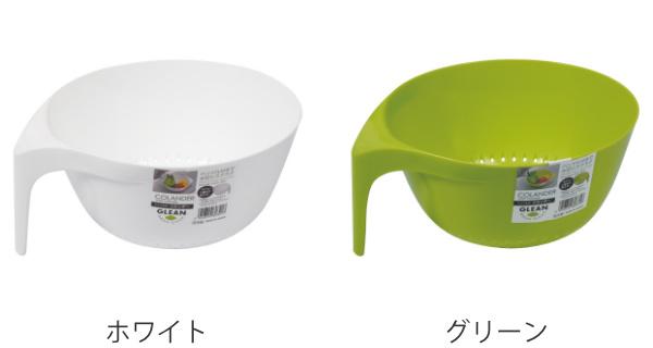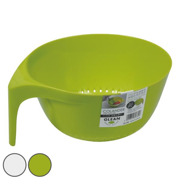 ボウル 穴開き ハンドル付 GLEAN コランダー ( 耐熱ザル 穴あき 水切り 湯切り カップ 調理ザル ボール ぼうる プラスチック 片手 取っ手 持ち手 キッチンツール キッチングッズ ホワイト 白 グリーン )
