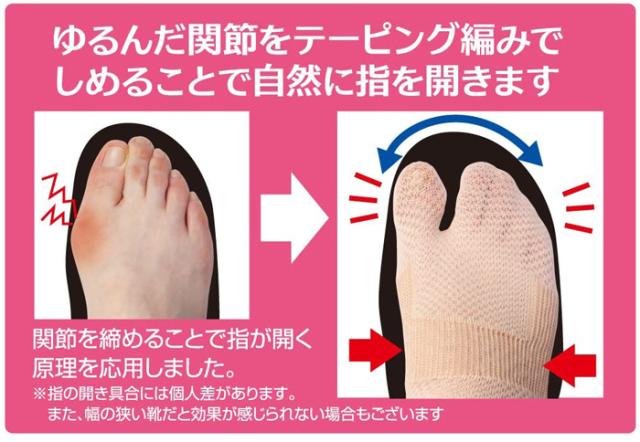 ※指の開き具合には個人差があります。また、幅の狭い靴だと効果が感じられない場合もございます。