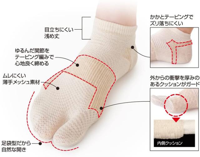 日本製 外反母趾 サポーター ソックス 薄手 洗える ベージュ 内反小趾 内反小指 矯正 蒸れない 綿混 メッシュ (af-6905)【メール便送料無料】 通気性 親指 小指 足裏 フットケア 予防 改善 メッシュ素材で汗や臭いの対策にも agesugi_sbe