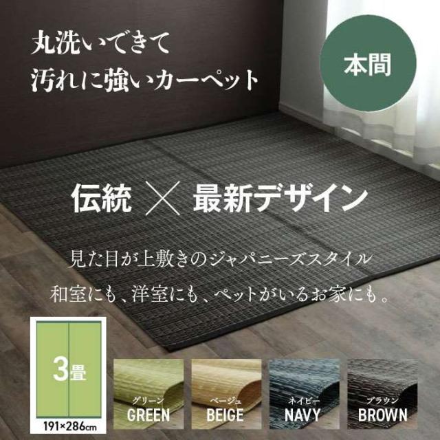 代引不可 洗える PPカーペット 本間3畳 約191×286cm アウトドア ペット インテリア フロア カーペット IKEHIKO BRC191286