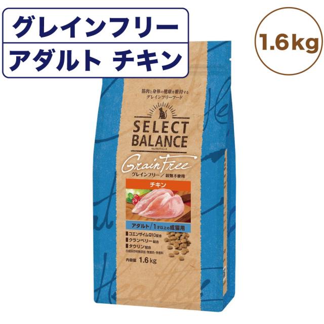 セレクトバランス グレインフリー アダルト 1才以上の成猫用 チキン 1.6kg 猫 キャットフード ドライ 無添加 無着色 猫用 穀物不使用