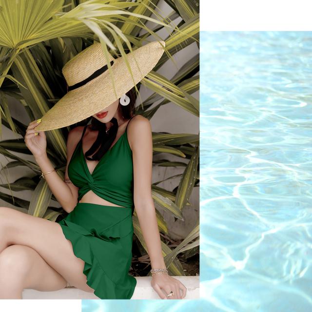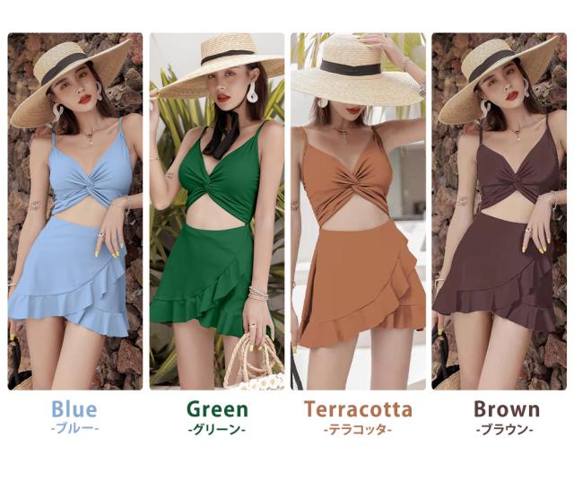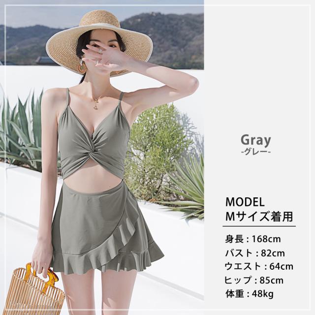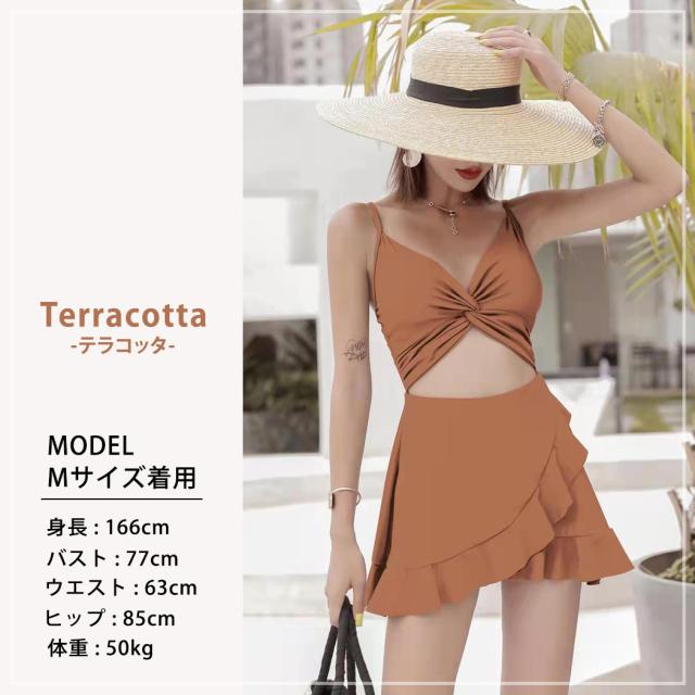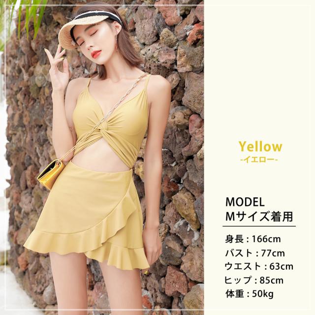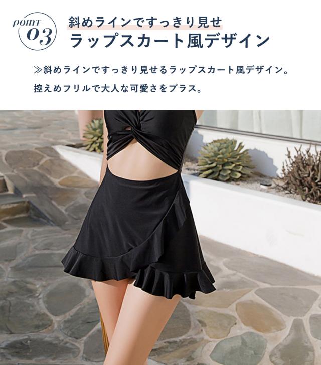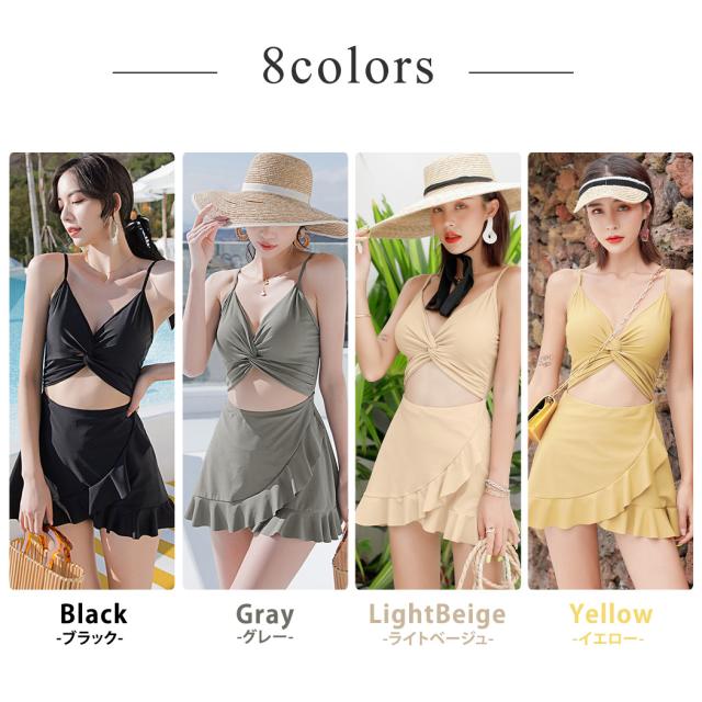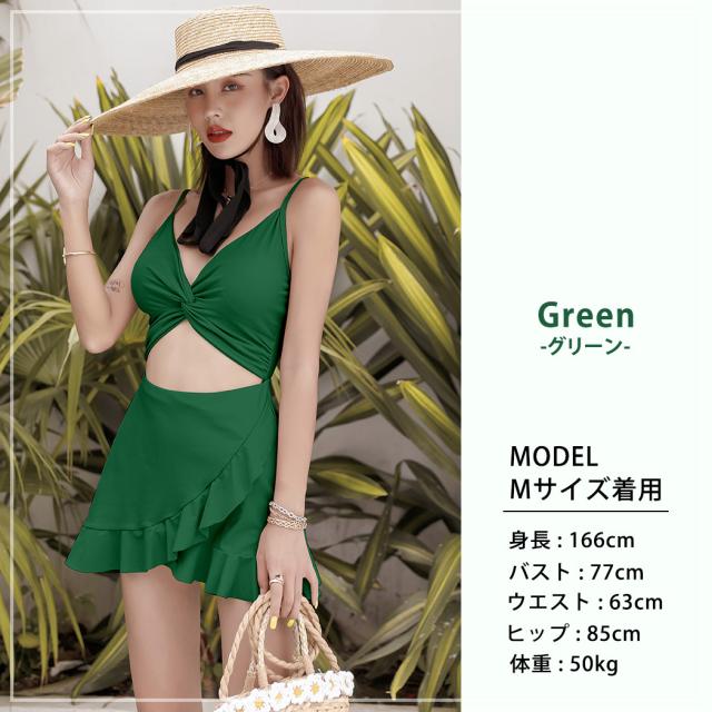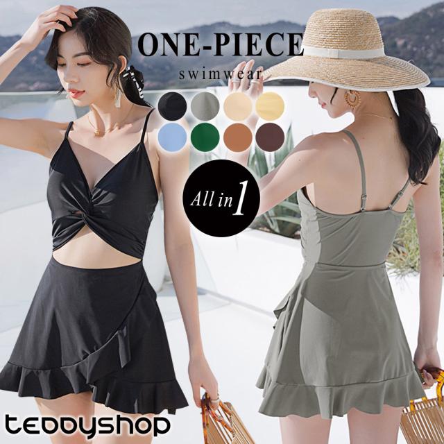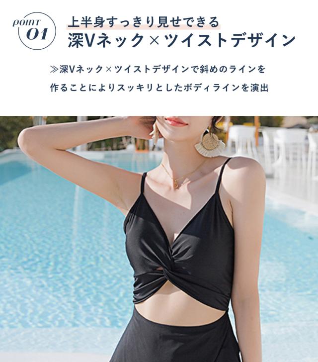 即納 水着 レディース ワンピース 体型カバー水着 20代 30代 40代 ママ水着 オトナ女子 露出控えめ 黒 白 セクシー Vネック キャミソール オールインワン カットアウト 無地 ウエスト お尻 太もも 脚 カバーアップ キャミワンピ ラップスカート風