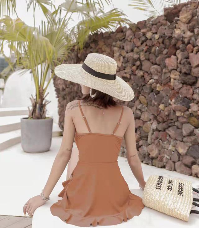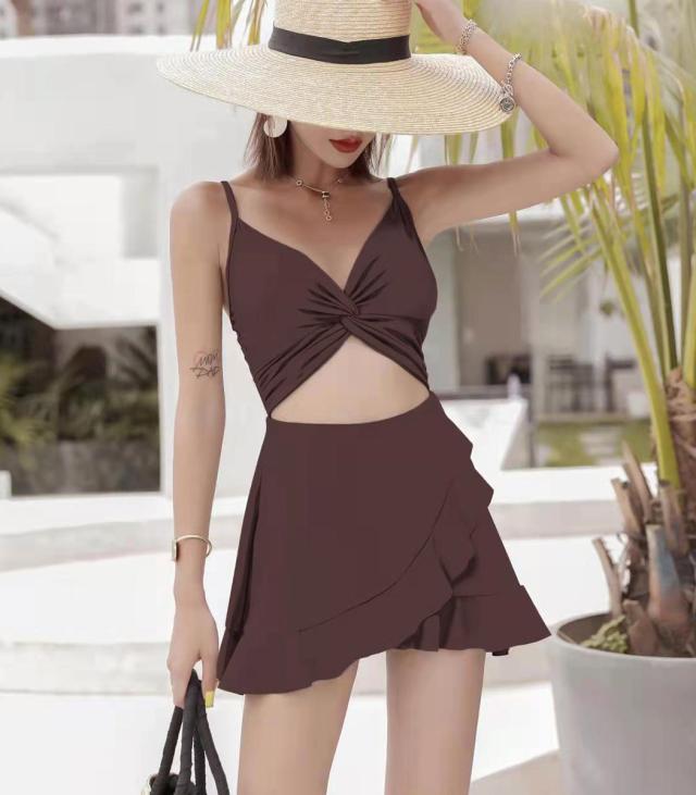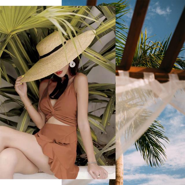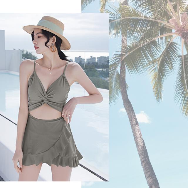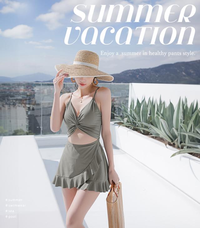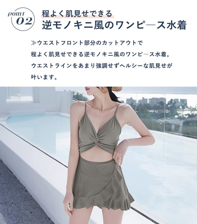 程よく肌見せできる逆モノキニ風のワンピ—ス水着。