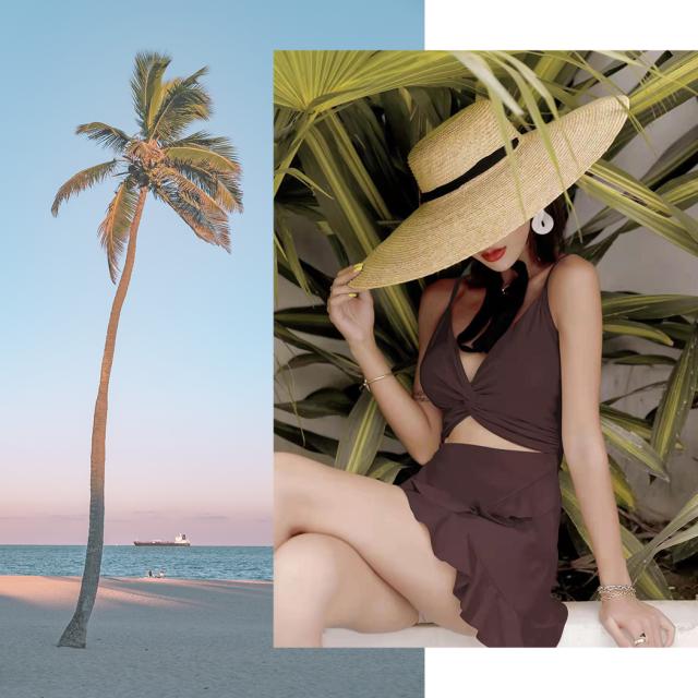 ビキニに比べ露出控えめなのが嬉しい、逆モノキニ風のワンピース水着。