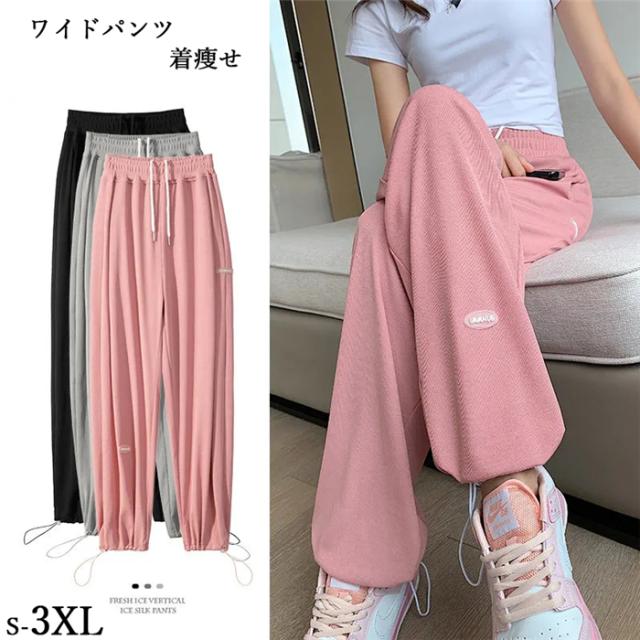 プリーツパンツ レディース ワイドパンツ ボトムス ロング丈 リブ ズボン 6色 プリーツ 春 夏 大きいサイズ ウエストゴム リラックスパンツ 涼しい