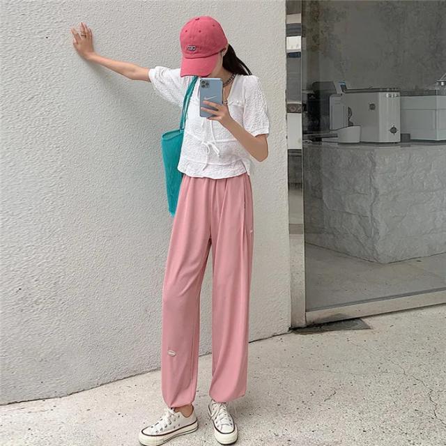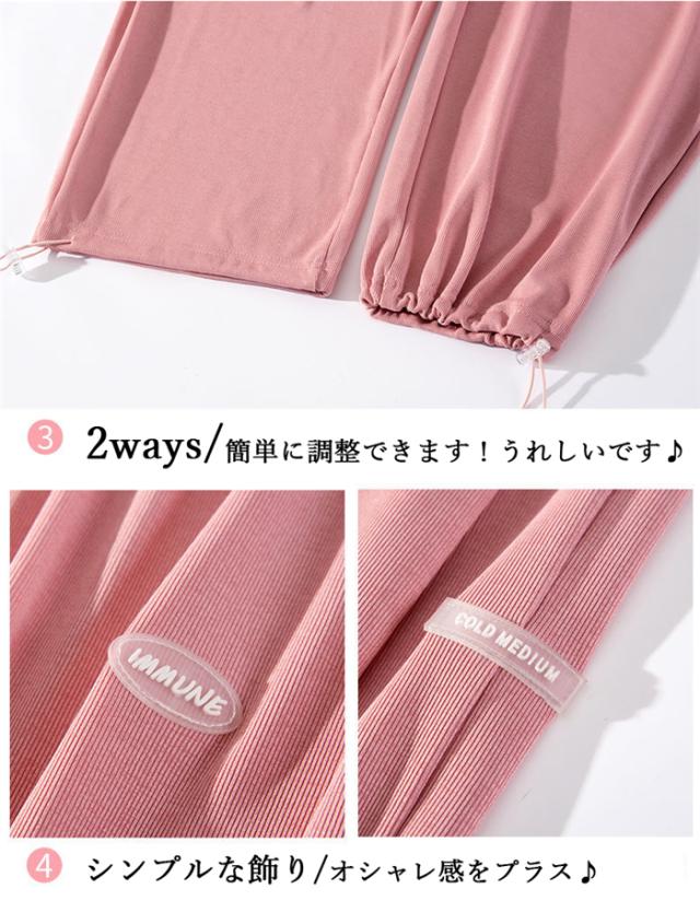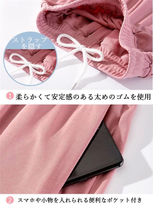 ・ウエストはゴムとひもで調整も簡単。履き心地ストレスフリーでウォーキングウェアやヨガパンツ、ルームウェアにもおすすめ。
