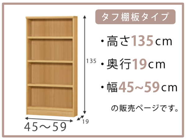 オーダー本棚 タフ棚板 幅45-59cm 奥行19cm 高さ135cm ( 収納棚 書棚 本棚 オーダー ラック 書庫 壁面収納 日本製 オーダーメイド 文庫本 コミック フリーラック )