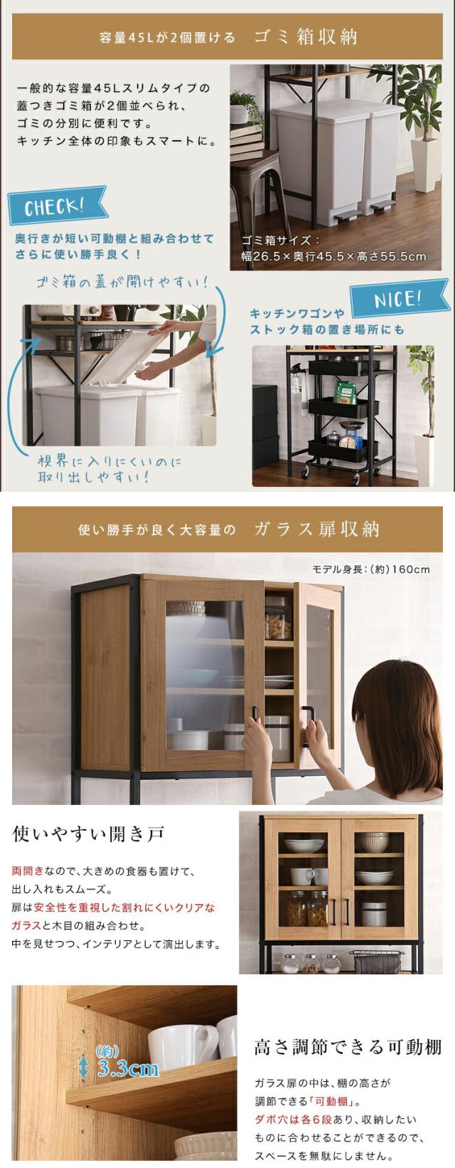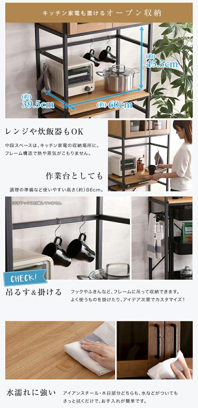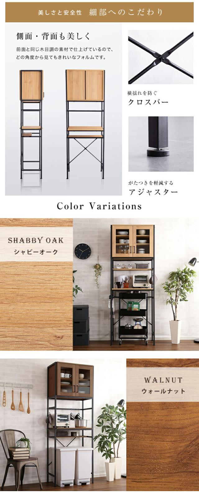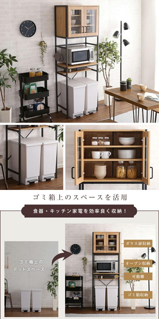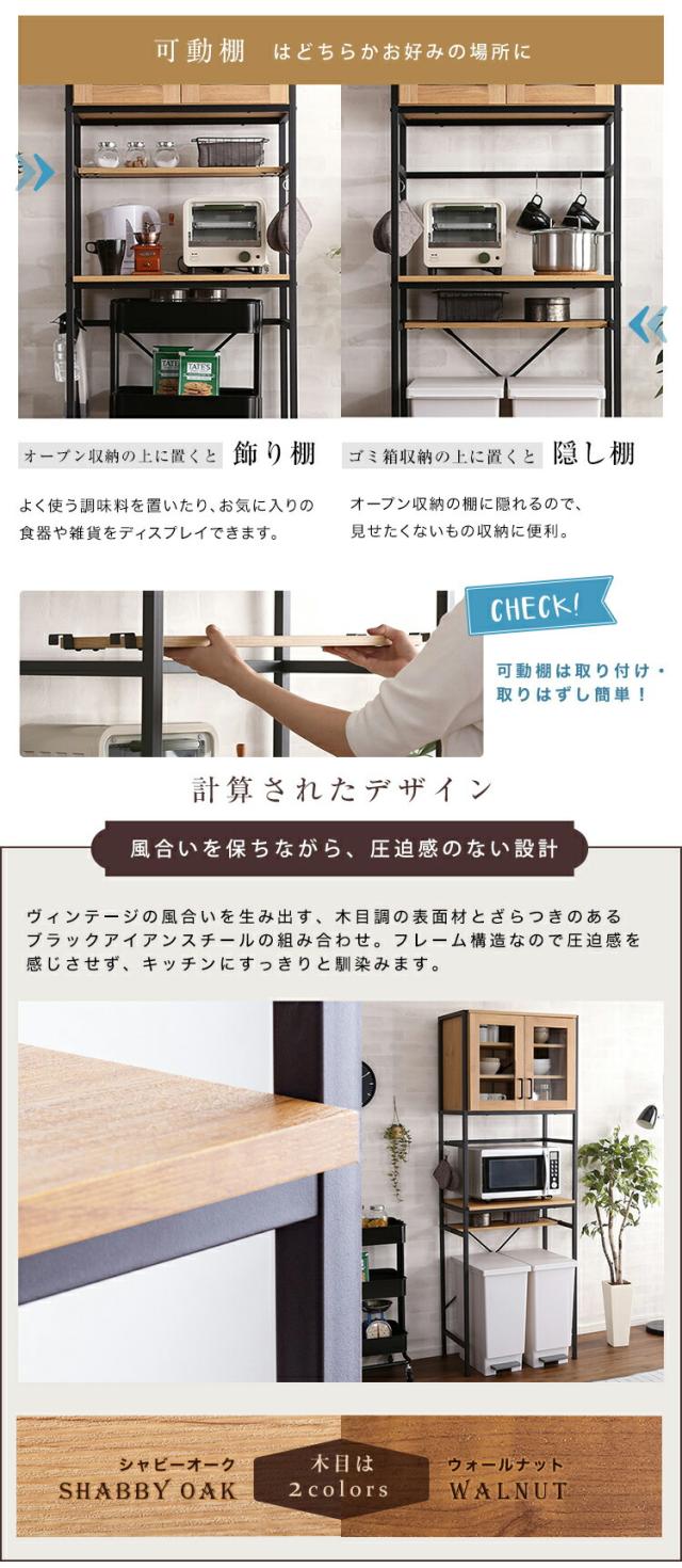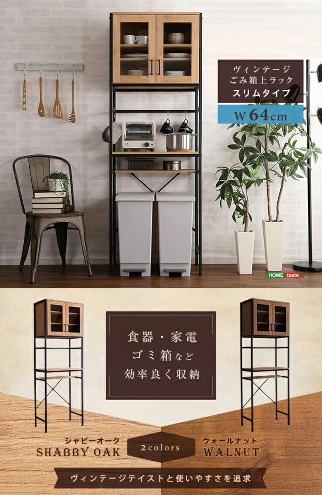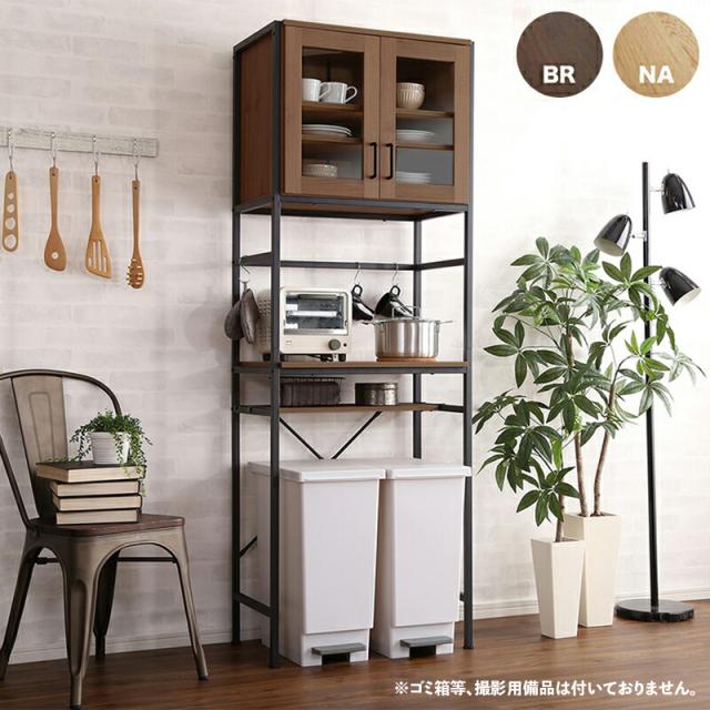 GEAR2 食器棚 幅 64cm ヴィンテージ ウォールナット シャビーオーク 幅64 奥行き40 高さ183cm ゴミ箱上収納 レンジ台 組立品 キッチン収納 カップボード キッチンボード おしゃれ ダイニングボード 台所収納