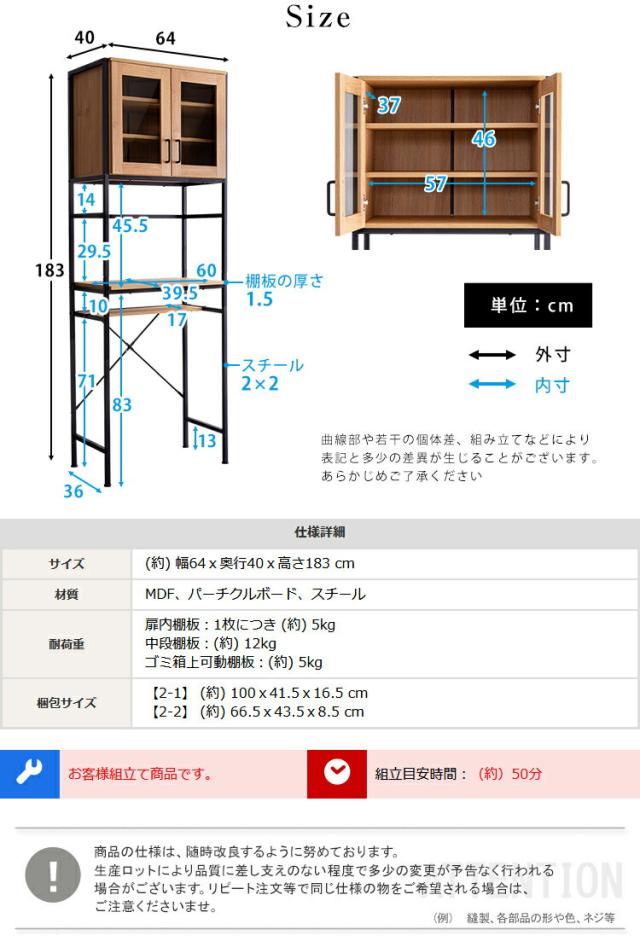 本体外寸:幅64 奥行40 高さ183cm