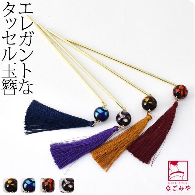 和装 髪飾り 小紋 紬 浴衣 通年用 日本製 タッセル玉簪 かんざし 簪 一本差し おしゃれ 大人 レディース 女性10022638