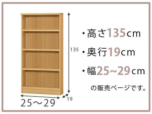 オーダー本棚 標準棚板タイプ 幅25-29cm 奥行19cm 高さ135cm ( 本棚 オーダー オーダーメイド 収納棚 壁面収納 日本製 書棚 ラック フリーラック コミック 文庫本 )