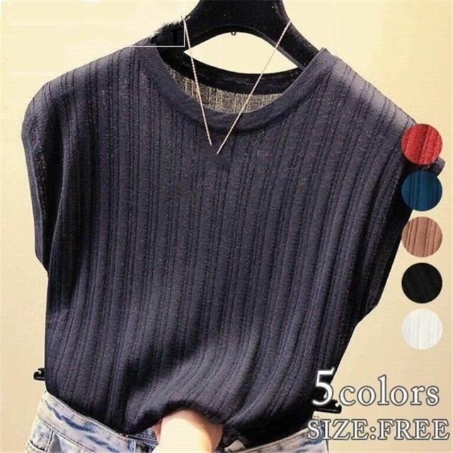 5color サマーニット シンプル ノースリーブ カジュアル デイリー ニット トップス レディース 夏新作