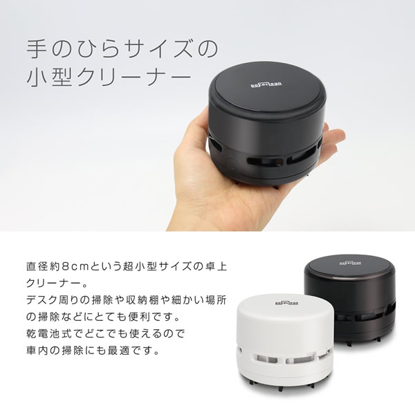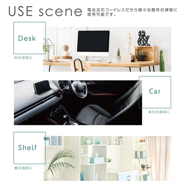 デスク周り、車内、棚等、小スペースのお掃除に ■寸法:約φ8×H6.5cm ■重量:約120g ■材質:ABS PP 鉄 ■電源方式:乾電池式 : 単3形アルカリ乾電池2本(別売) ■定格時間:10分 ※記載は商品仕様の一部です。仕様説明不足等の理由での返品はできません。特に適合等は必ずご確認ください。