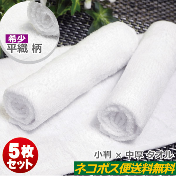 おしぼりタオル 業務用 80匁 白 平織 5枚セット 激安 ホワイト 白色 無地 ハンドタオル 希少な平織 ネコポス便送料無料 プロ仕様 格子でない希少な平織 定番カラー 小ロット 子ども 子供用 保育園 幼稚園