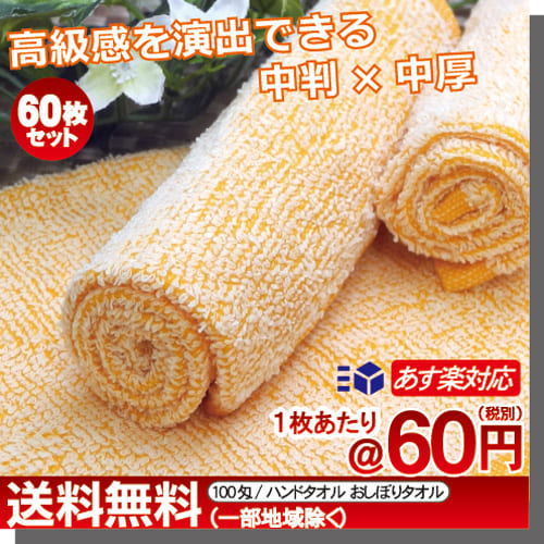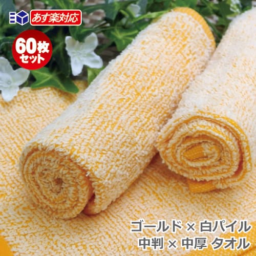 おしぼりタオル 業務用 60枚 100匁 マリーゴールド 中判サイズ 厚手 タオル ハンドタオル マリーゴールド×白パイル タオル おもてなしタオル ゴージャス 清潔 プロ仕様 お手拭き 激安 【子ども 子供用 保育園 幼稚園】