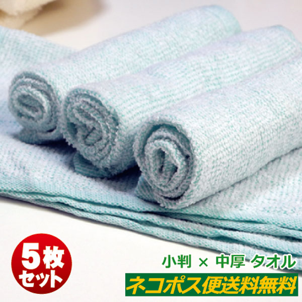 おしぼりタオル 業務用 80匁 アイスグリーン 5枚セット 激安 送料無料 おしぼり ハンドタオル 安い 子供 保育園 幼稚園