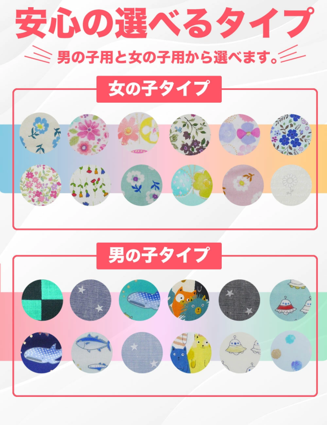 色柄はお任せになりますが、女の子用、男の子用は選択して