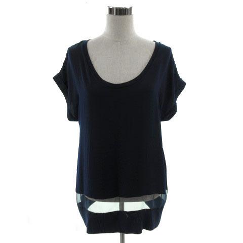 【中古】ザラ ZARA カットソー 半袖 Uネック 切替え 裾シースルー ネイビー 紺 S レディース
