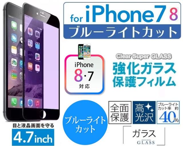 iPhone8ガラスフィルム iPhone7強化ガラス保護フィルム 9H 4.7インチ 目に優しい ブルーライトカット アイフォン全面保護 ブラック