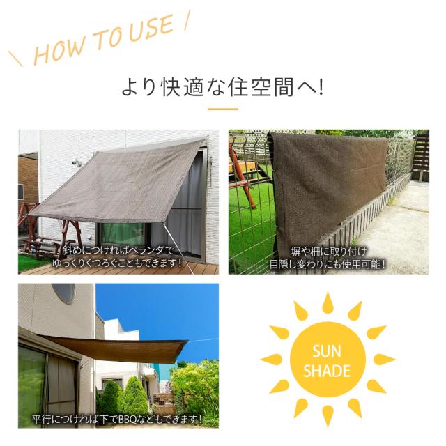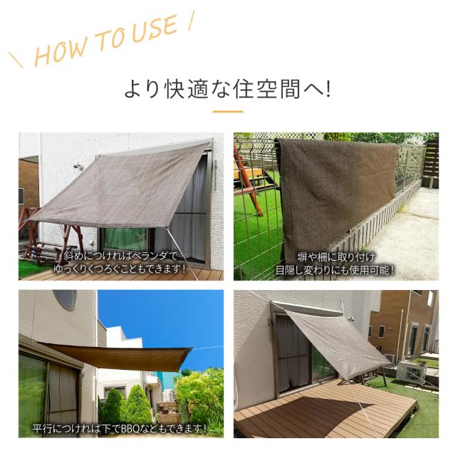 サンシェード 日よけ シェード おしゃれ 大型 スクリーン オーニング バルコニー ベランダ フェンス 2×2m 目隠し 目かくし 紫外線 UV対策 省エネ 節約 節電 よしず 洋風 タープ 日除け 遮光率85% UVカット ダークブラウン
