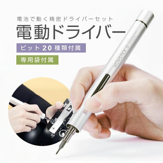 乾電池駆動 電動精密ドライバー アルミニウム合金 ビット20種類+専用袋付属 ハンディドライバー ペン型ドライバー WOWS20S