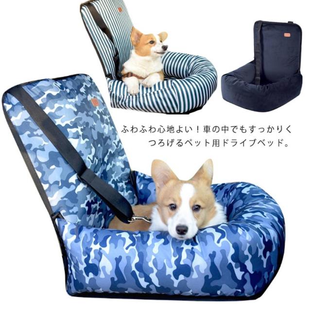 ドライブベッド 飛び出し防止 シートベルト付 ペット お出かけ カー用品 防水 ドライブ ボックス 洗える 助手席 小中型犬 滑り止め