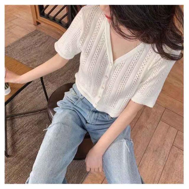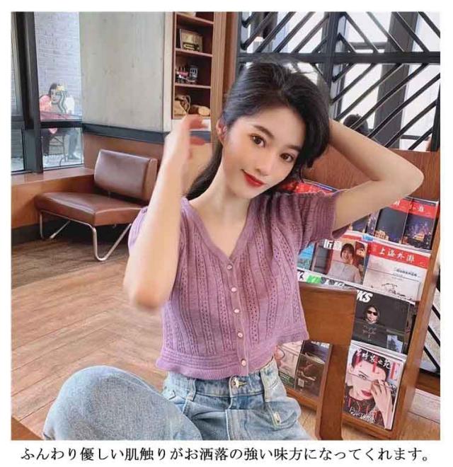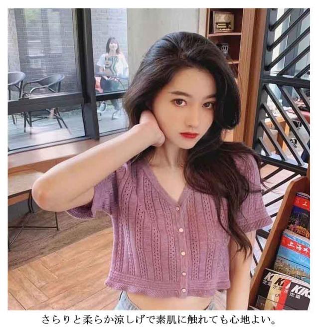 送料無料 ニット レディース 春夏 トップス 半袖 五分袖 サマーニット 透かし編みニット 薄手 涼しい おしゃれ 着回し ベーシック 高見え 透け