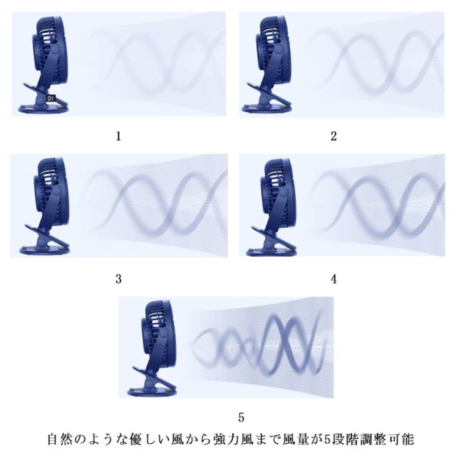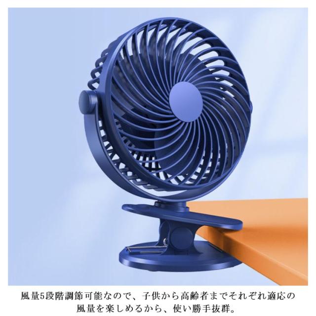 2WAY 扇風機 クリップ型 卓上 ファン ミニ扇風機 角度調整自由 車載 充電式 静音 5段階風量調節 ベビーカー用 カー用品 サーキュレーター