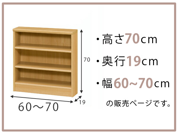 オーダー本棚 標準棚板タイプ 幅60-70cm 奥行19cm 高さ70cm ( 本棚 オーダー 壁面収納 オーダーメイド 収納棚 日本製 書棚 ラック フリーラック コミック 文庫本 )