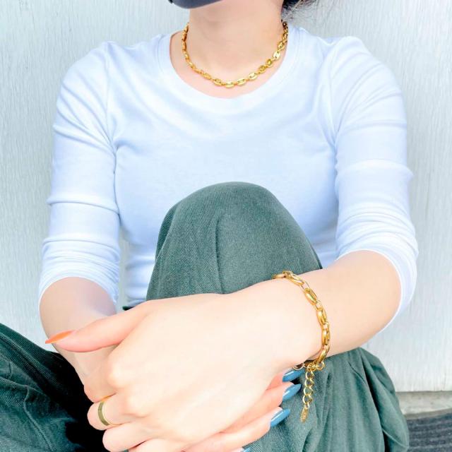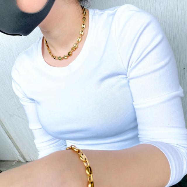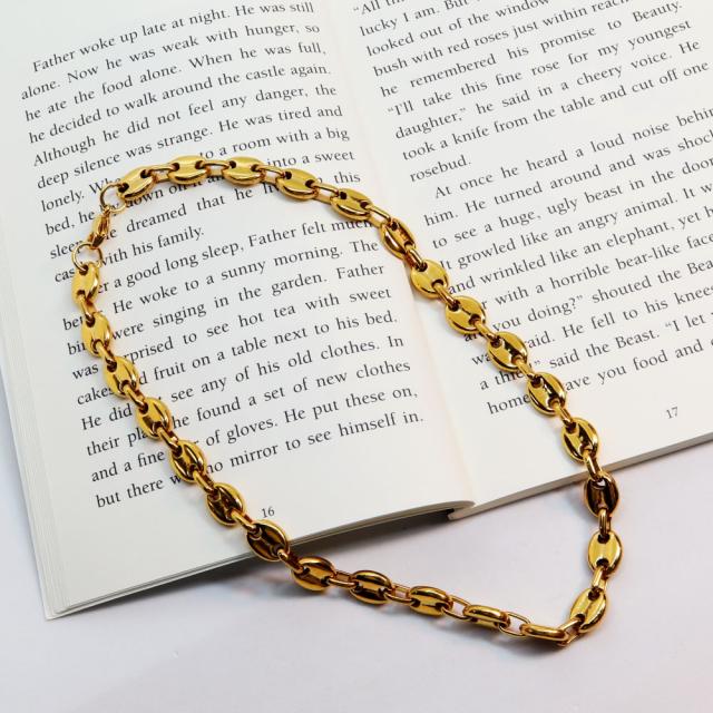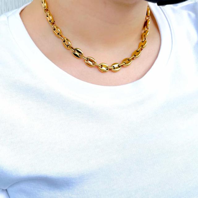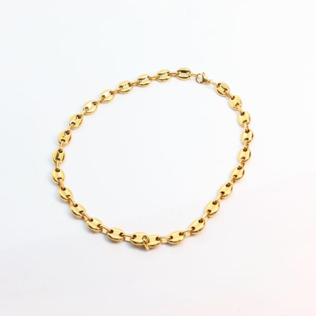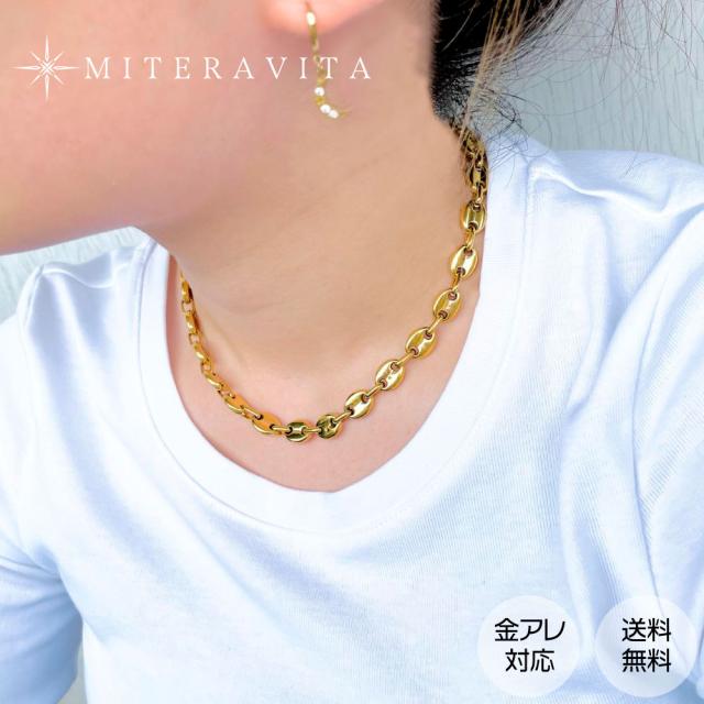 サージカルステンレス ネックレス 18Kコーティング コーヒービーンズ チェーン 金属アレルギー対応 金アレ ニッケルフリー ゴールドネックレス 【N55】
