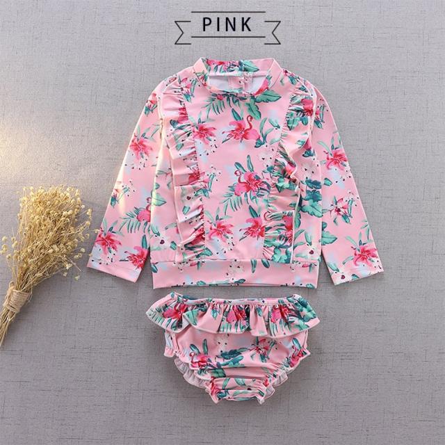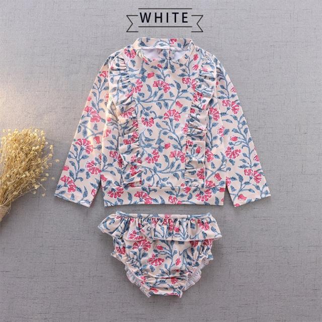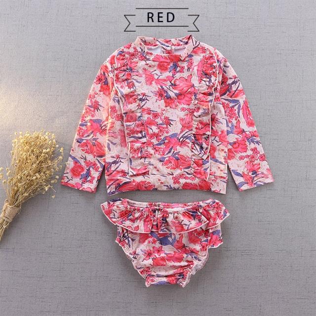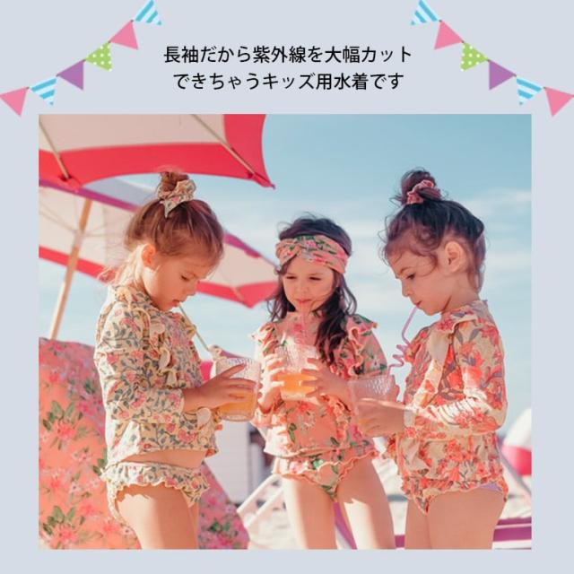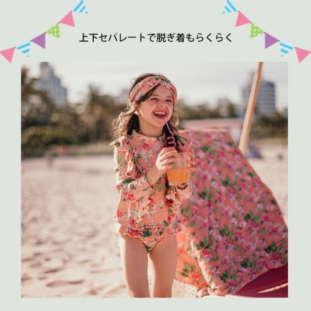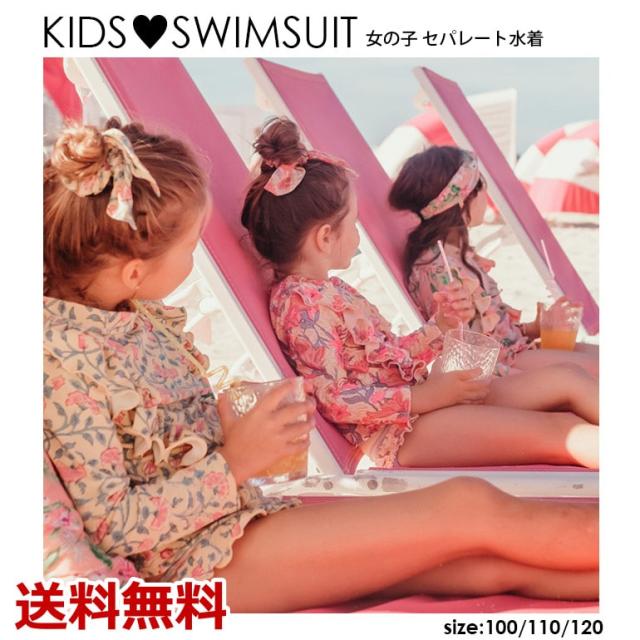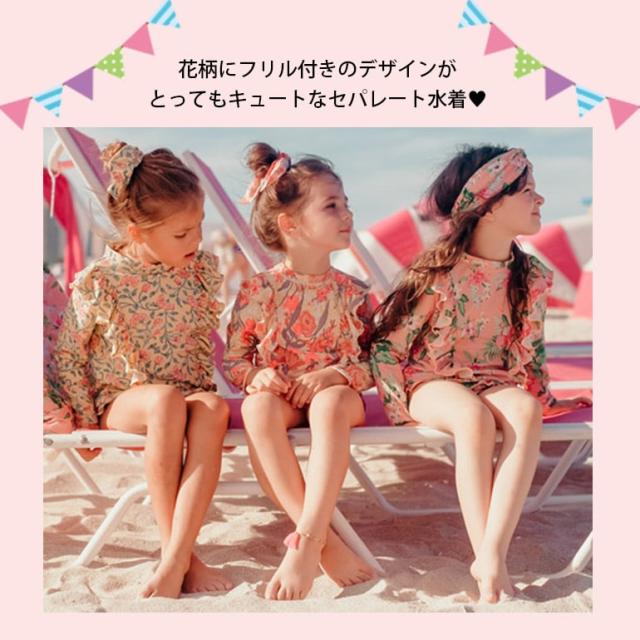 キッズ 水着 スイムウェア セパレート ガールズ ジュニア 女児 2点セット 長袖 スカート風パンツ フリル 花柄 かわいい おしゃれ 海水浴 プール 送料無料