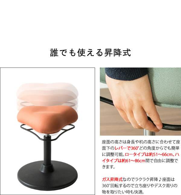 スツール 布張り おしゃれ かわいい プロポーション 背筋矯正 身体とイスの一体感! 分厚いクッション プロポーションスツール ロータイプ 高さ51〜66cm 上下昇降 布張り ガス昇降 360度 回転 三角座面
