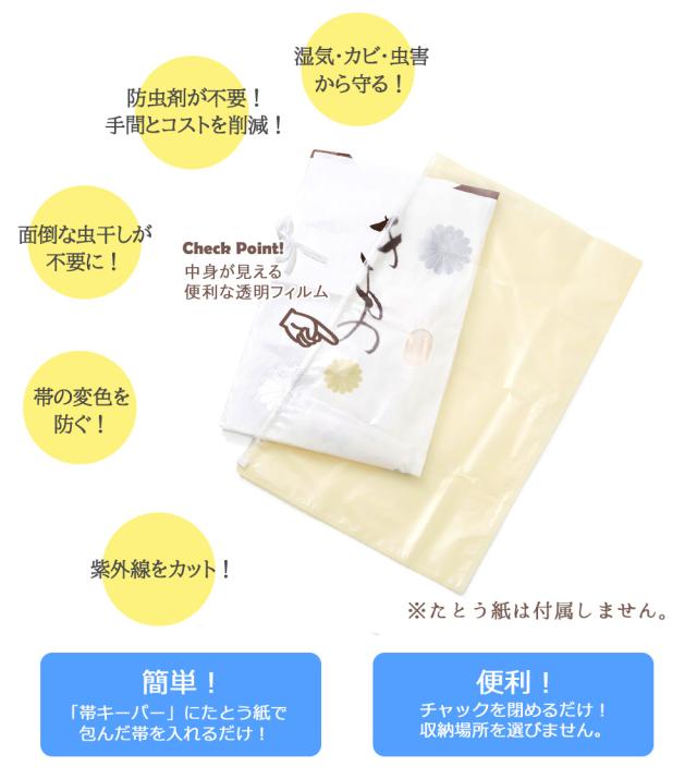 【1個までメール便発送OK】帯キーパー 帯保管 収納袋 保存袋 一枚入り 防カビ 防虫 防水 防臭 虫干しいらず 高密閉 オールシーズン 着物 礼装 おしゃれ 通年用 保管収納用品 日本製 半透明 クリア ファスナー チャック式 プロガード
