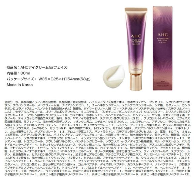 AHCアイクリームforフェイス 30ml 高級アイクリームを全顔に 1本7役 オールインワンクリーム 韓国 化粧品 化粧水 美容液 乳液 アイクリーム ![]() ![]() ![]() ![]() ![]() ![]() | ||||
