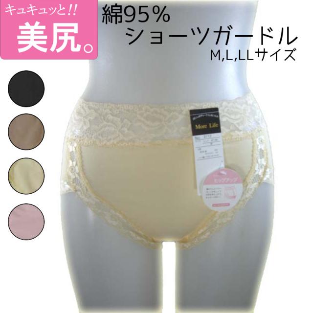 ショーツガードル ガードルショーツ ショーツ ガードル 美尻 ヒップアップ ヒップハンガー ヒップハング 浅ばき 補正 補正下着 M L LL 綿 レディース 女性 下着 メール便送料無料