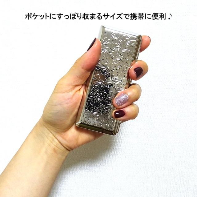 シガレットケース 10本収納 ロング対応 超コンパクト シルバー彫刻デザイン 3タイプ 潰れない タバコケース メンズ レディース